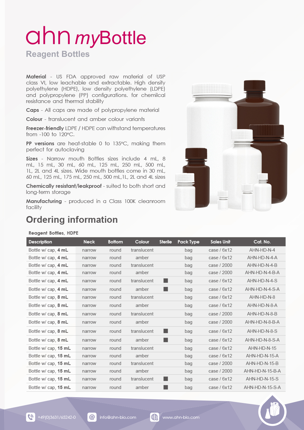 ³ÐÀº ÀÔ±¸ º´ - 30mL, 60mL, 125mL, 175mL, 250mL, 500mL, 1L, 2L,4L ¿ë·®À¸·Î Á¦°øµË´Ï´Ù.