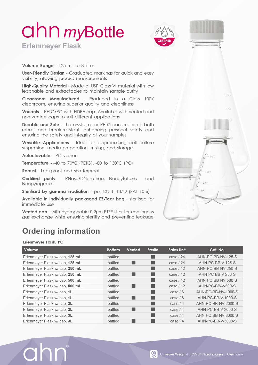![]() ¿ë·® ¹üÀ§ - 125mL ~ 3L »ç¿ëÀÚ Ä£ÈÀû µðÀÚÀÎ - ºü¸£°í ½¬¿î °¡½Ã¼ºÀ» À§ÇÑ ´«±Ý Ç¥½Ã·Î Á¤¹ÐÇÑ ÃøÁ¤ °¡´É. HDPE ĸÀÌ ÀÖ´Â PETG/PC ´Ù¾çÇÑ ¿ëµµ¿¡ ¸Â°Ô Åëdz ĸ°ú ºñÅëdz ĸÀ¸·Î Á¦°øµÊ °íǰÁú ¼ÒÀç - »ùÇà ¼øµµ À¯Áö¸¦ À§ÇØ ¿ëÃ⼺ ¹× ¿ëÃ⼺ ¹°ÁúÀÌ ³·Àº USP Class VI ¼ÒÀç·Î Á¦ÀÛ Å¬¸°·ë Á¦Á¶ - Class 100K Ŭ¸°·ë¿¡¼ »ý»êµÇ¾î Ź¿ùÇÑ Ç°Áú°ú û°á¼º º¸Àå ³»±¸¼º ¹× ¾ÈÀü¼º - Åõ¸í PETG ±¸Á¶´Â °ß°íÇÏ°í ÆÄ¼Õ ¹æÁö ±â´ÉÀÌ ÀÖ¾î °³ÀÎ ¾ÈÀüÀ» °ÈÇÏ°í »ùÇÃÀÇ ¾ÈÀü°ú ¹«°á¼ºÀ» º¸ÀåÇÔ. ´Ù¾çÇÑ ¿ëµµ - ¼¼Æ÷ ¹è¾ç ÇöŹ, ¹èÁö Áغñ, È¥ÇÕ ¹× º¸°ü¿¡ ÀÌ»óÀûÀÔ´Ï´Ù. ¿ÀÅäŬ·¹ÀÌºê °¡´É – PC(Æú¸®Ä«º¸³×ÀÌÆ®) ÀçÁúÀÇ Á¦Ç°¸¸ °¡´É ¿Âµµ - -40~70¡ÆC(PETG), -80~130¡ÆC(PC) ÀÎÁõµÈ ¼øµµ - RNase/DNase ¹«ÇÔÀ¯, ¼¼Æ÷µ¶¼º ¾øÀ½, Pyrogen ¾øÀ½ ¸ê±Õ Æ÷Àå : ISO 11137-2(SAL 10-6)¿¡ µû¶ó °¨¸¶¼± ¸ê±Õ, EZ-Tear bag¿¡ °³º°Æ÷ÀåµÊ Vent ĸ - ¼Ò¼ö¼º 0.2¥ìm PTFE ÇÊÅÍ Æ÷ÇÔ ¹«±Õ »óŸ¦ À¯ÁöÇÏ°í ´©ÃâÀ» ¹æÁöÇÏ¸é¼ Áö¼ÓÀûÀÎ °¡½º ±³È¯ ![]() ![]() |